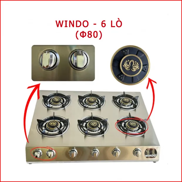 Đặt mua Bếp gas công nghiệp Windo 6 lò phi 80